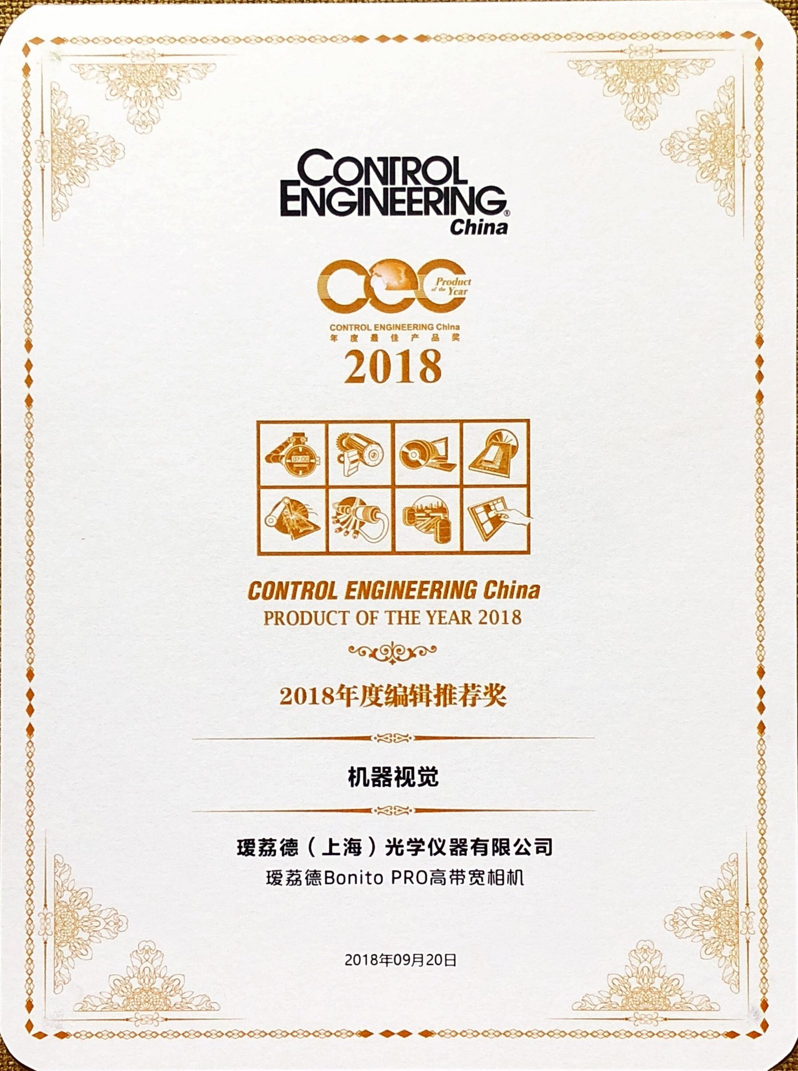 Allied Vision’s Bonito PRO high-speed camera series received an Editor’s Choice award in the category “Machine Vision” during the Global Automation and Manufacturing Summit China held in Shanghai, China on September 20, 2018.