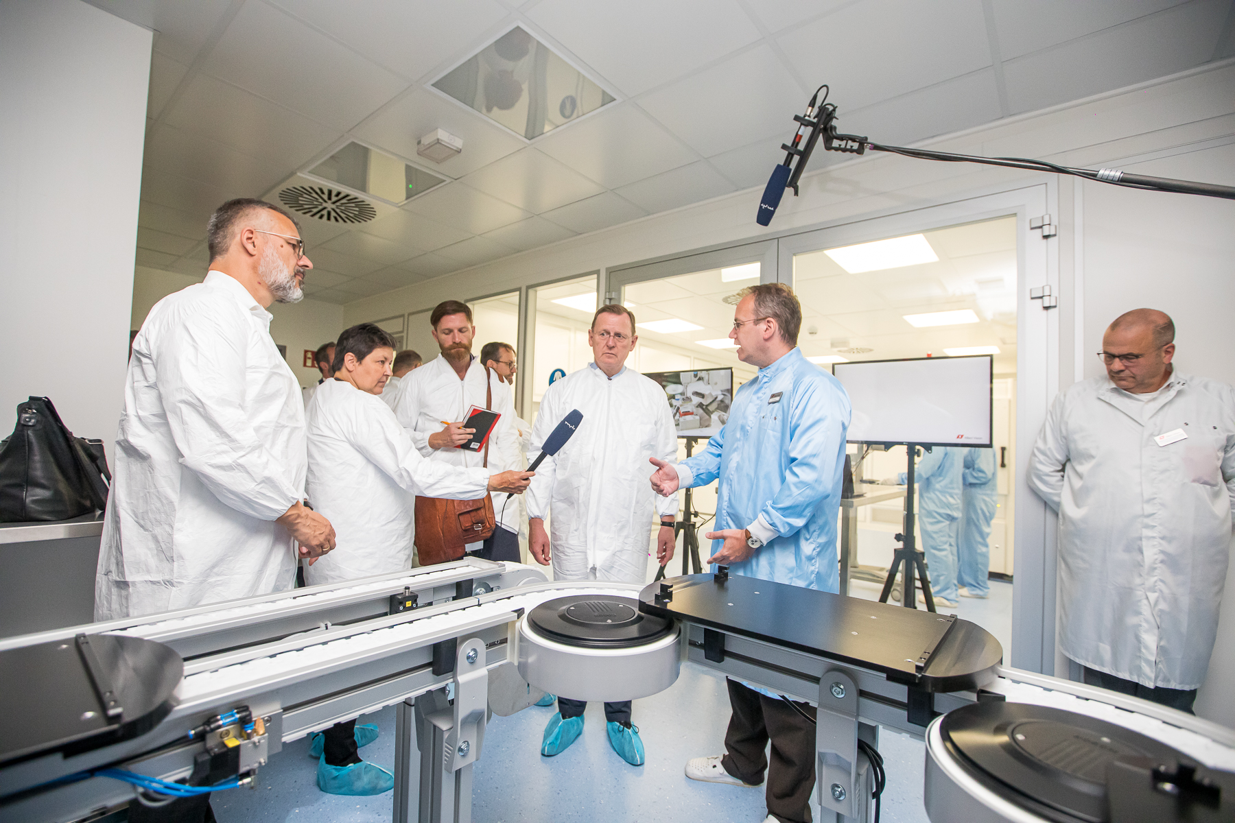 On Friday June 21st, Allied Vision in Stadtroda officially started series production of the groundbreaking Alvium camera series with an exclusive inauguration ceremony. Bodo Ramelow, Prime Minister of Thuringia, did not miss it and personally inaugurated the new production facility. Besides Bodo Ramelow, Dr. Günter Ahnert represented the city of Stadtroda as guest speaker. Headquartered in Stadtroda, Thuringia, Allied Vision is one of the world's leading manufacturers of industrial cameras for image processing and an important employer and driving force for the regional economy.