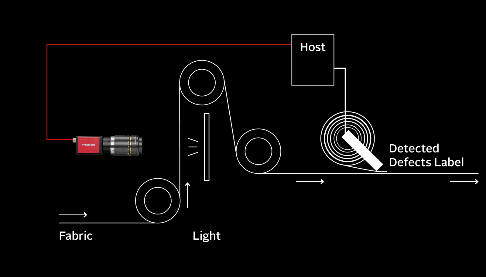 COMVIS decided to equip their inspection units with Allied Vision's Mako cameras. Integrated into the Texplorer software suite via the standard software for machine vision, HALCON, two Allied Vision Mako G-234 cameras capture high quality images of the inspected fabrics. They can easily be integrated into the COMVIS system because of it small dimensions. The camera also includes Power over Ethernet, and thus can be operated via a single cable for power and data transfer.