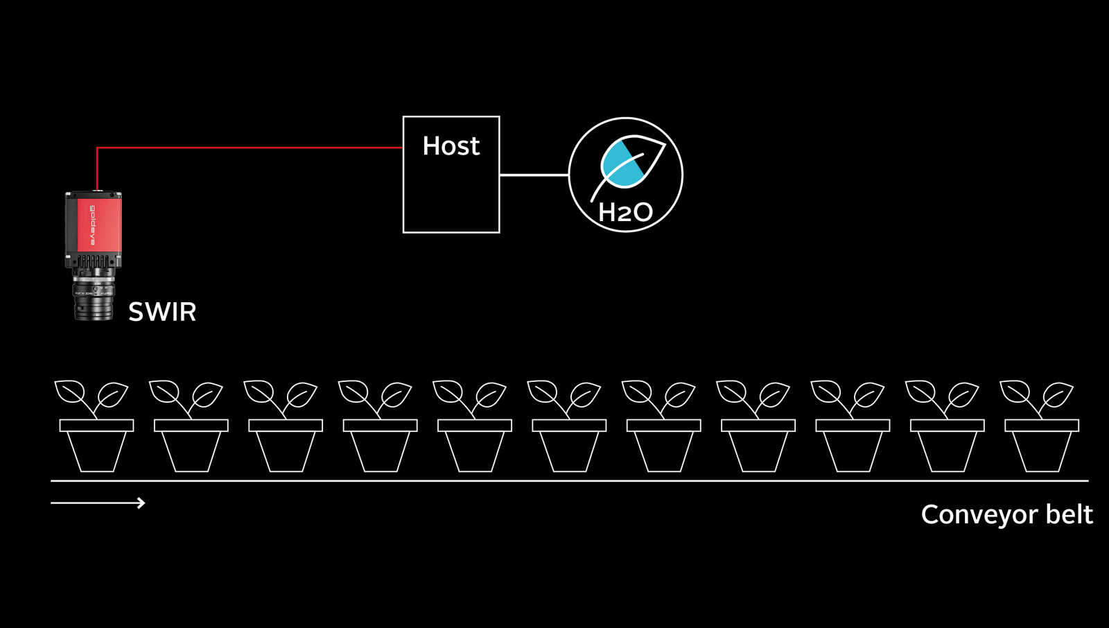 For these measurements (in Stations 3 and 4 of the Scanalyzer3D), LemnaTec relies on Allied Vision's infrared Goldeye cameras. With its InGaAs (indium gallium-arsenide) sensor technology, the Goldeye is sensitive in the SWIR range, thus precisely capturing the spectral range in which water absorbs infrared light most strongly. The Goldeye distinguishes itself with its outstanding image quality that allows for especially precise measurements, provided by active sensor cooling using a thermoelectric module (TEC) and innovative image correction algorithms that optimize images within the camera.