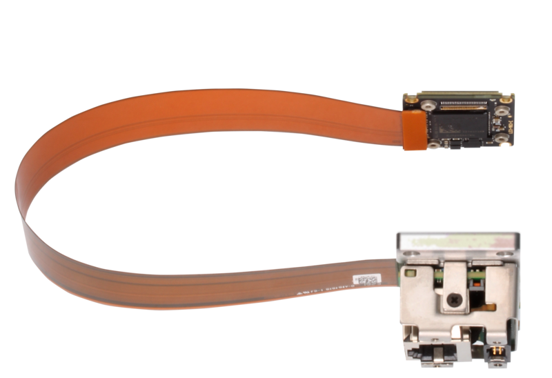 Alvium G1ボードレベルカメラは、GigEコネクターおよびI/Oコネクターの位置が、Alvium G1標準カメラとは異なる用途向けに、特別に設計されています。センサーとインターフェースを長さの異なるフレックスケーブル(110mmと200mm)で接続することにより、スペースが限られているシステムにおいても向きや位置を調整して配置できます。