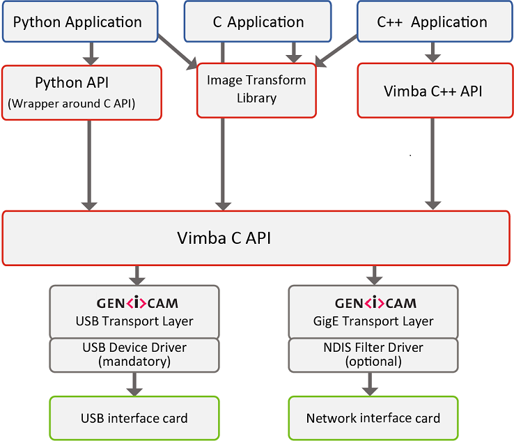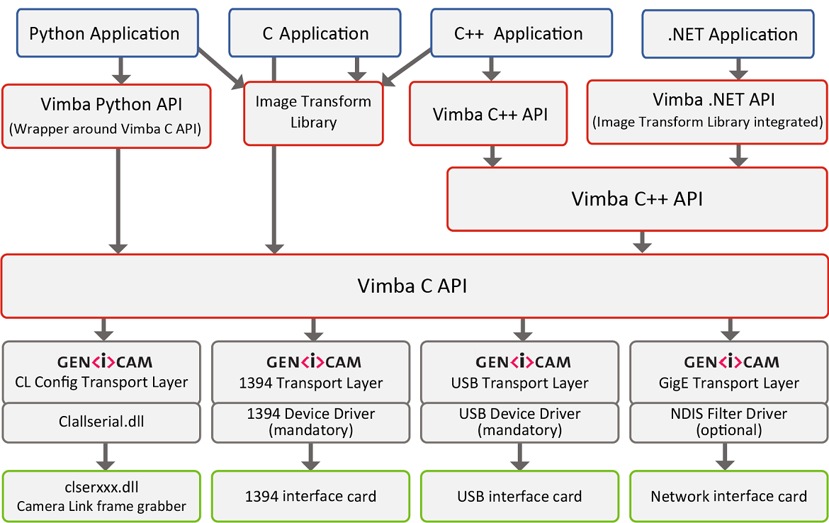 The C API is Vimba's basic and easy-to-use API. It can also be used as API for C++ applications.