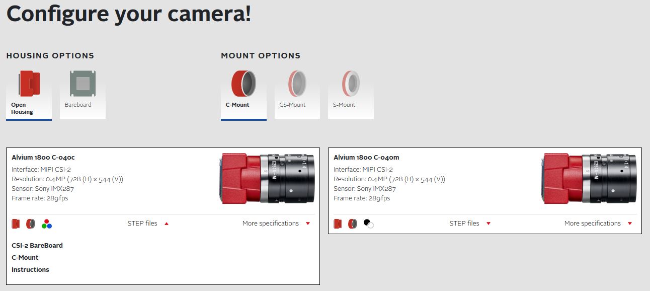 3D CAD files (STEP) for Alvium cameras and accessories